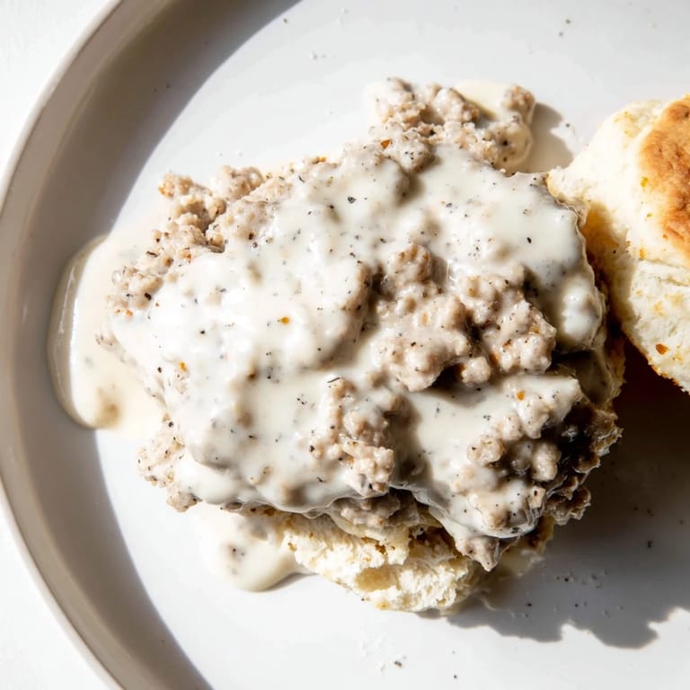 Pin it The smell of sausage browning in cast iron on a cold Saturday morning is what brings my family downstairs without calling. I learned to make biscuits and gravy from a neighbor in Tennessee who insisted that cold butter and a light hand were the only rules that mattered. She was right. Every time I fold that dough, I think of her kitchen and the way she'd swat my hand if I overworked it.