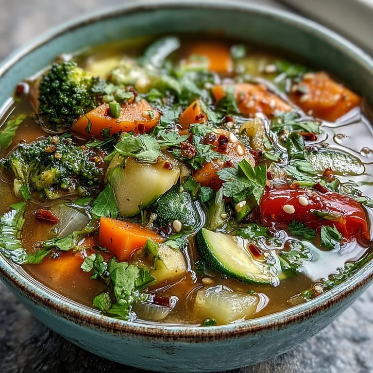 Pin it My neighbor knocked on my door one gray afternoon with a chunk of fresh ginger, insisting I had to try her family's soup. She said it was what her grandmother made whenever anyone felt under the weather, but honestly, it became my go-to whenever I needed something that felt like a warm hug in a bowl. The kitchen filled with this incredible aroma—ginger, garlic, and something impossibly comforting—and I was hooked before the first spoonful.
