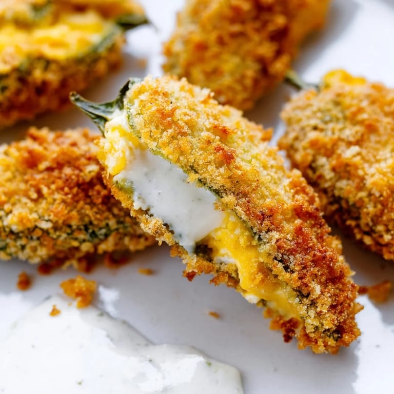 Pin it The first time I made jalapeño poppers, I was trying to impress someone at a backyard gathering, and I didn't have the faintest idea what I was doing. I stood in my kitchen at 4 PM with eight jalapeños, a block of cream cheese, and pure optimism, watching YouTube videos on my phone propped against a flour container. Something clicked when I bit into that first golden, crispy popper—the heat of the jalapeño meeting the cool, creamy cheese inside felt like a small triumph. Now, whenever I make them, I'm not just frying peppers; I'm recreating that moment of happy accident that somehow turned into something people actually ask me to bring to gatherings.