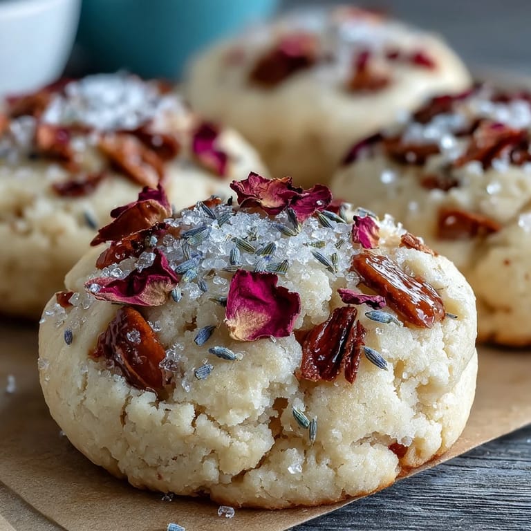 These shortbread cookies make a delightful gift when arranged in a decorative box. Serve them as part of a dessert spread for afternoon tea or alongside a cup of herbal tea to highlight the floral notes. Their elegant appearance also makes them a charming table accent for celebratory occasions.