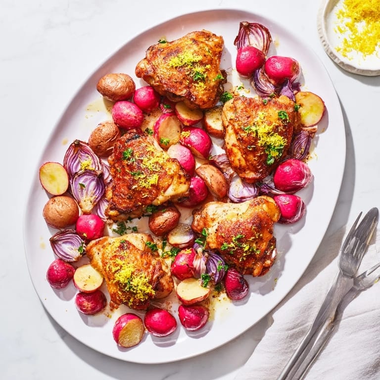 Pin it The first time radishes crossed my dinner plate, they were raw and peppery, sitting pretty in a salad. Then I accidentally tossed some extras into a roasting pan with chicken, and everything changed. The heat transforms those crisp little roots into something almost sweet, mellow and tender with gorgeous caramelized edges. Now I keep extra radishes on hand specifically for roasting, and this sheet pan dinner has become my weeknight savior.